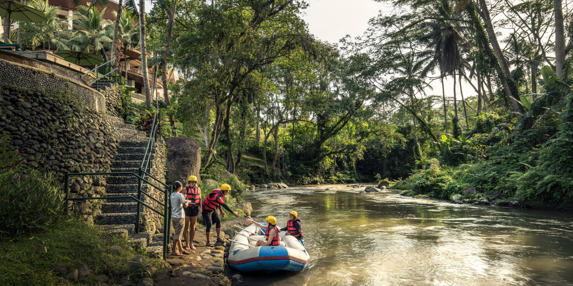 Erleben Sie Balis längsten Fluss im echten Four Seasons Stil. Beginnen Sie mit einer 30-minütigen Fahrt durch Reisanbaugebiete zur Ayung River Gorge und paddeln Sie dann in gemächlichem Tempo, begleitet von Experten, die Ihnen die kulturelle und ökologische Bedeutung des Flusses näherbringen. Unterwegs schwimmen Sie durch Dschungeltunnel, beobachten Wildtiere und halten an einer heiligen Quelle für ein Wasserreinigungsritual. Die Reise endet mit einer Anlegestelle direkt am Flussufer des Resorts, wo Sie ein herzlicher Empfang erwartet. (Nur für private Buchungen, für bis zu sechs Gäste.)