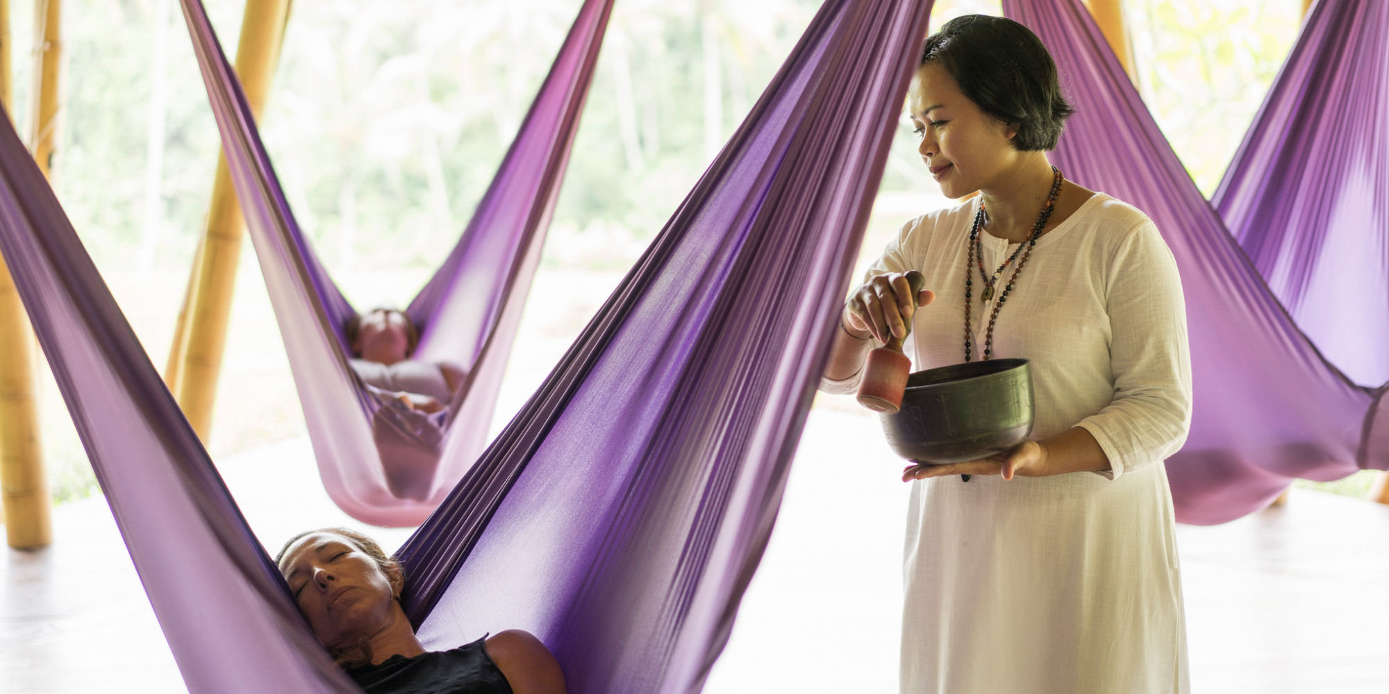- Sacred Nap in einer Seidenhängematte, begleitet von der Wellness-Mentorin des Resorts, Ibu Fera