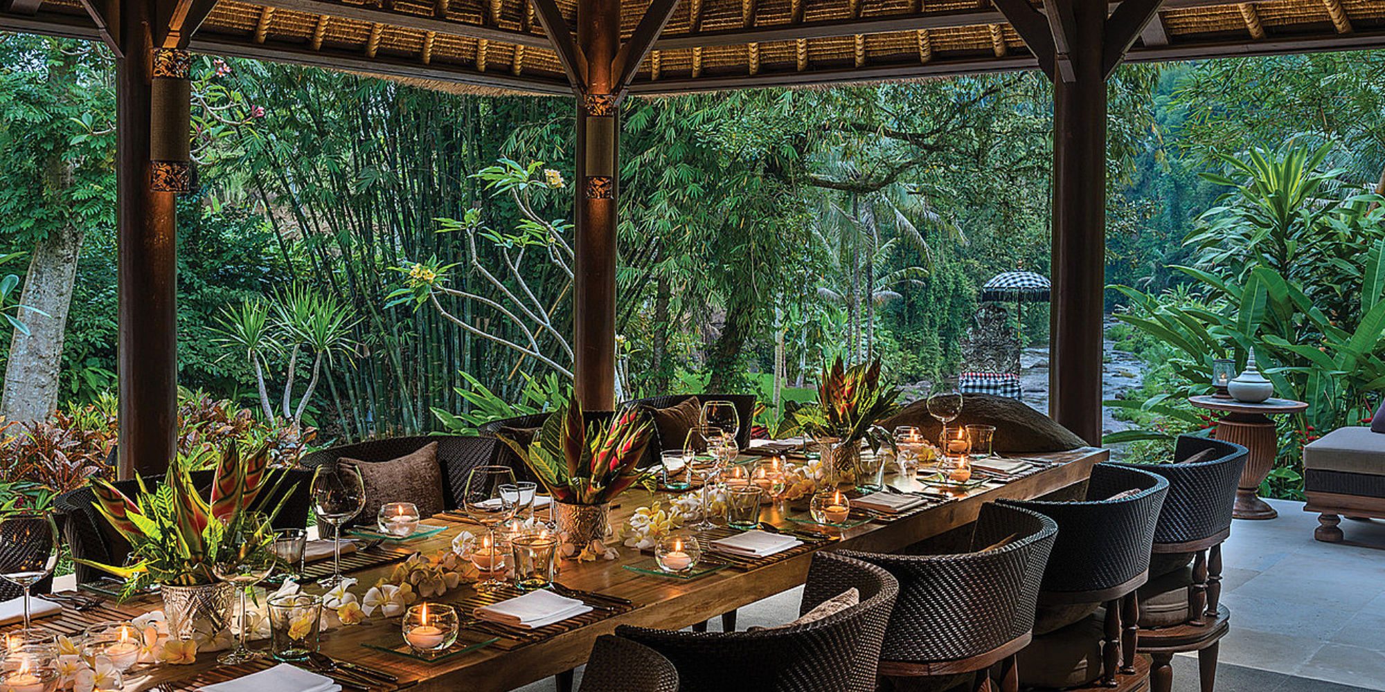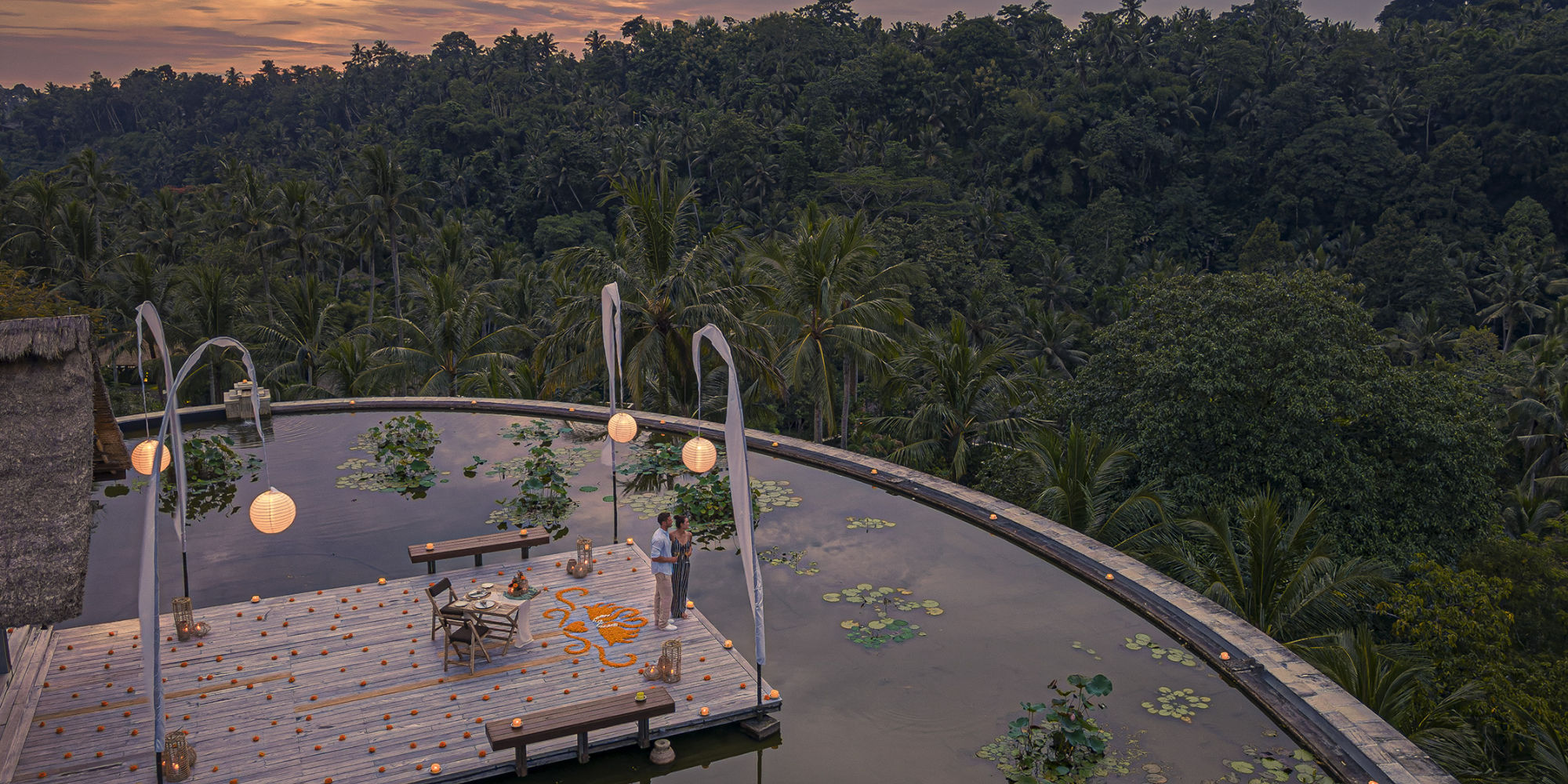 Feiern Sie über den Baumwipfeln am Lotus-Teich auf dem Dach oder am Ayung River. Intime Hochzeiten, Wellness-Retreats für Gruppen und private Abendessen werden durch den Four Seasons Service, den Panoramablick und maßgeschneiderte Menüs zu einem unvergesslichen Erlebnis. Für Gruppenessen und Meditation stehen auch Veranstaltungsräume am Flussufer zur Verfügung.