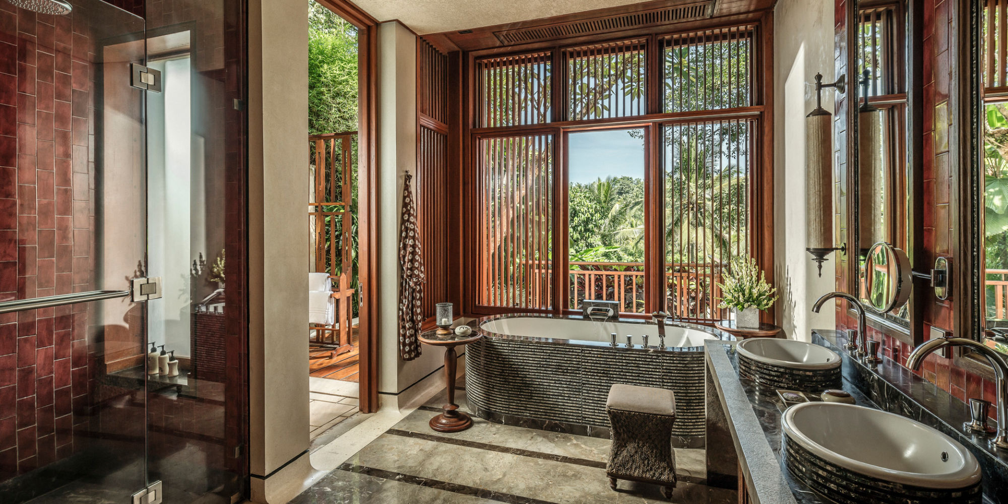 Im Herzen des balinesischen Hochlanddschungels bietet das Four Seasons Resort Bali in Sayan eine abgeschiedene Auszeit, wo üppiger Regenwald, smaragdgrüne Reisterrassen und zwei heilige Flüsse aufeinander treffen. Ob du über eine spektakuläre Baumbrücke ankommst oder auf einer privaten Rafting-Tour den Ayung River hinuntergleitest und direkt am Resort aussteigst, die ruhige Energie des Resorts umgibt dich sofort. Hier, zwischen der spirituellen Stadt Ubud und den verehrten Flusstälern Balis, kannst du in alte Traditionen, ganzheitliches Wellness und gehobenen Luxus eintauchen.