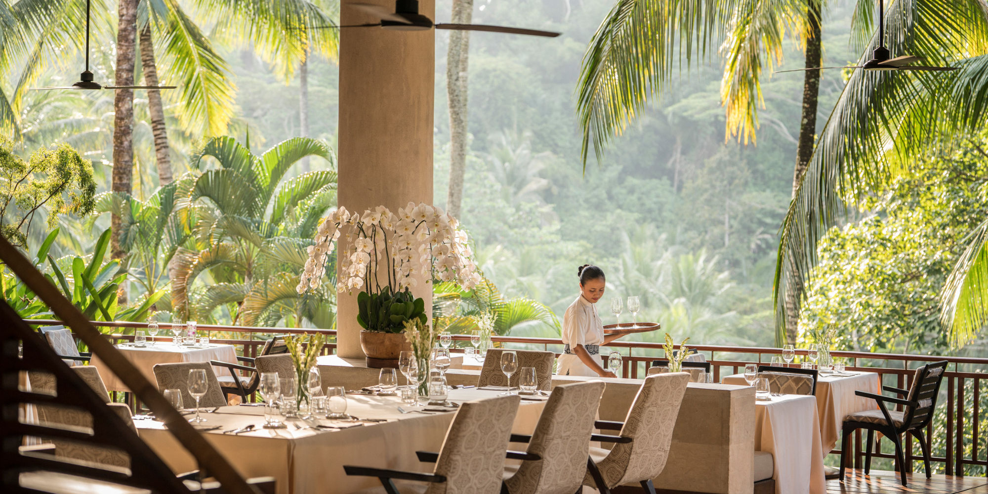 Genieße pflanzliche Gourmetküche und balinesische Festgerichte im Sokasi, der Kochschule am Flussufer des Resorts, und am Chef’s Table. Erlebe die goldene Ära des Reisens in der Jati Bar mit fassgelagerten Cocktails, die mit lokalen Hölzern aromatisiert sind, oder genieße raffinierte asiatische und indonesische Küche im Ayung Terrace, das hoch in den Baumwipfeln thront. Am Flussufer bietet das Riverside Café frische Meeresfrüchte und Grillklassiker zum Abendessen sowie leichte Bowls und Salate zum Mittagessen.