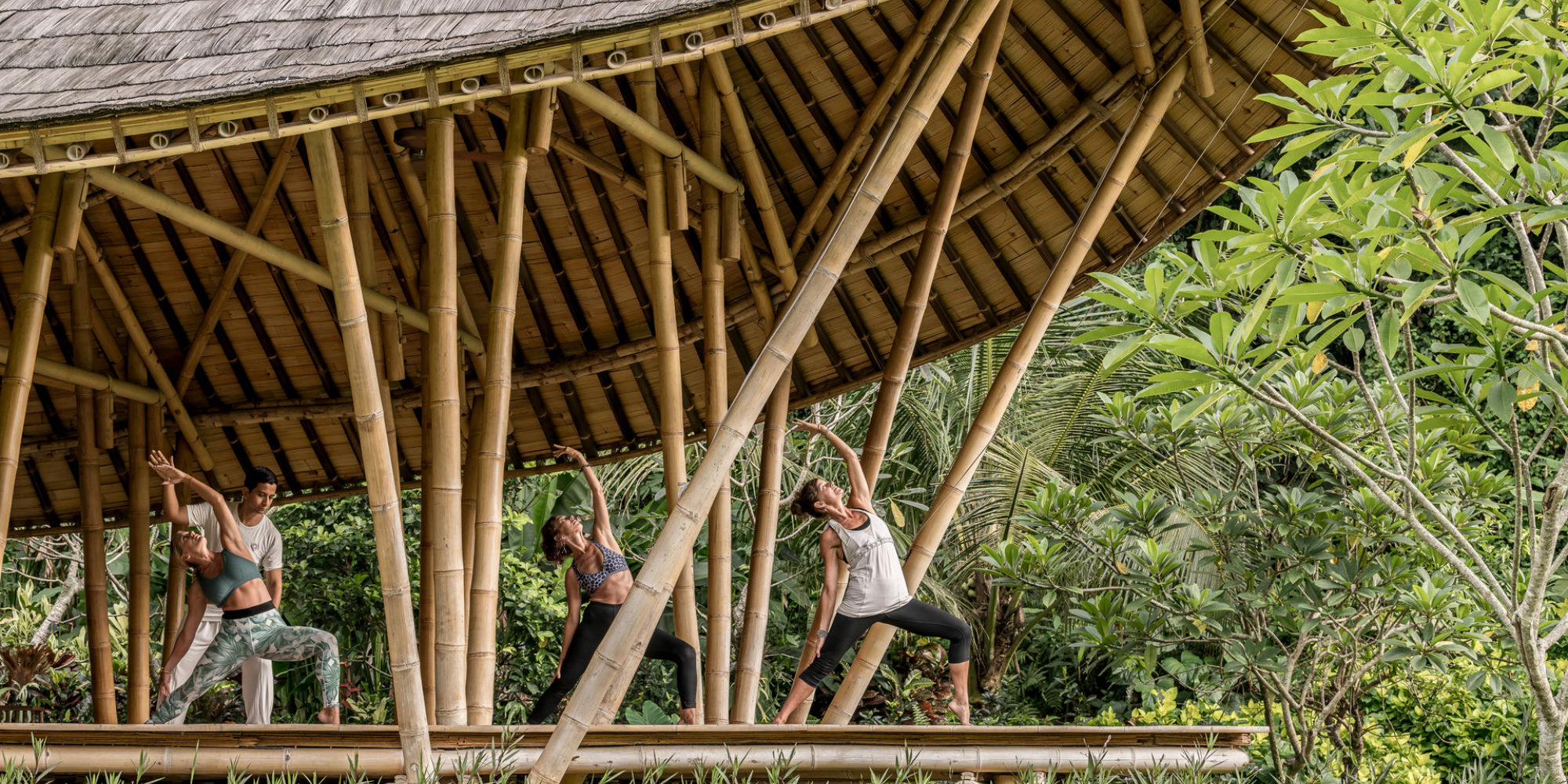 - Dharma Shanti Yoga Bale, ein Pavillon aus 100 % Bambus für tägliches Yoga und Meditation